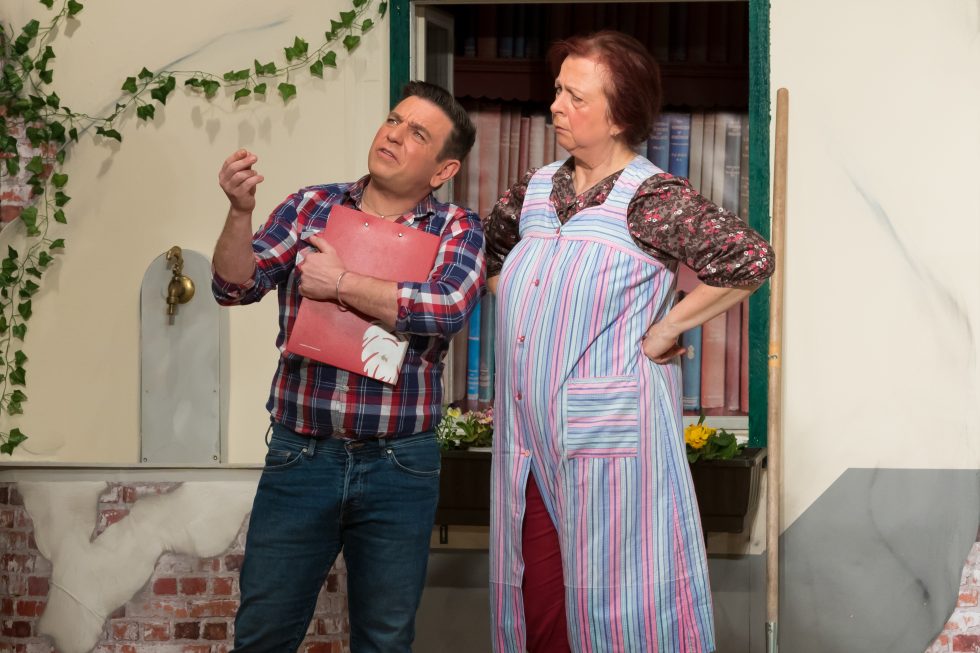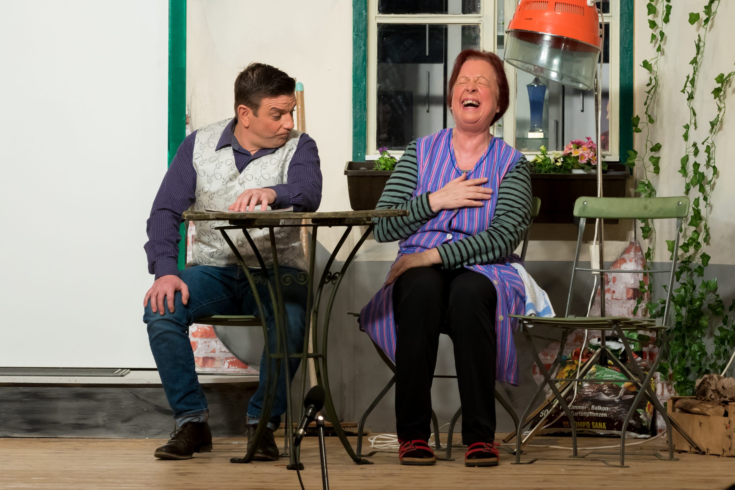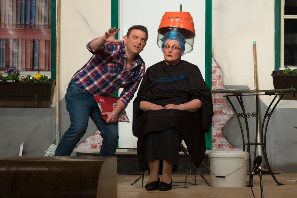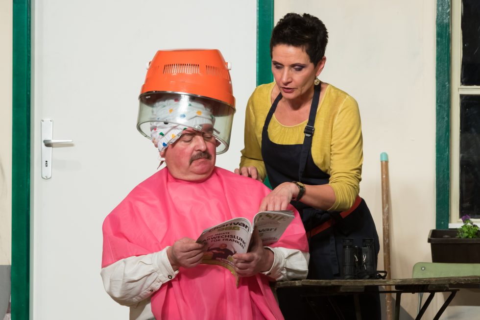 Wenn eine neugierige Hausmeisterin und eine resolute Besitzerin eines Damen-Friseursalons wegen Geldproblemen nach einer unkonventionellen Lösung suchen, dann kann das nur turbulent werden. Abgesehen davon, dass sie weiterhin alles in der Nachbarschaft im Griff haben, entwickeln sie eine aberwitzige Idee, wie sich aus den alleinstehenden Trockenhauben-Kundinnen und den frischen Witwern, denen Frau Gugl am Friedhof begegnet, Kapital schlagen lässt. Waschen, Legen, Kuppeln!